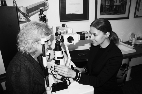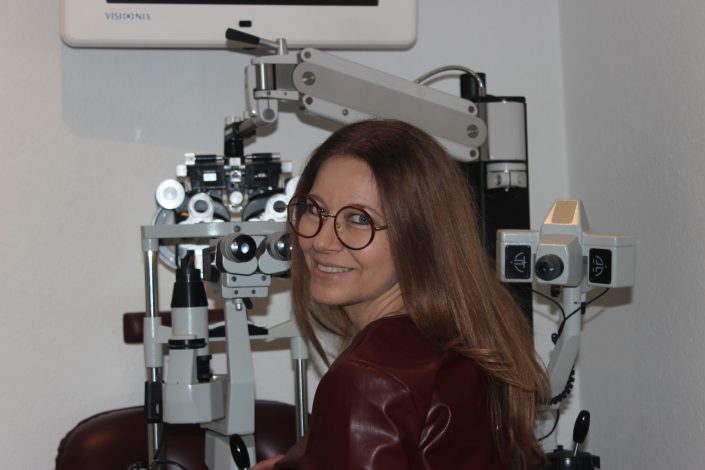 Stefanie Elsner bei der Kontaktlinsenanpassung.