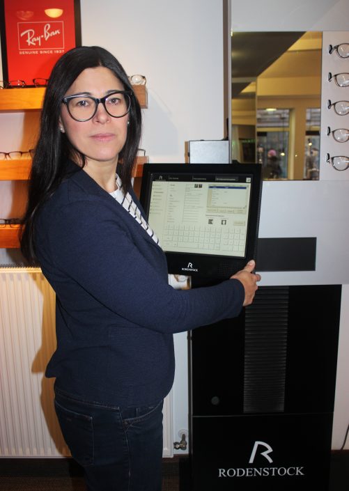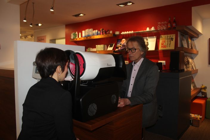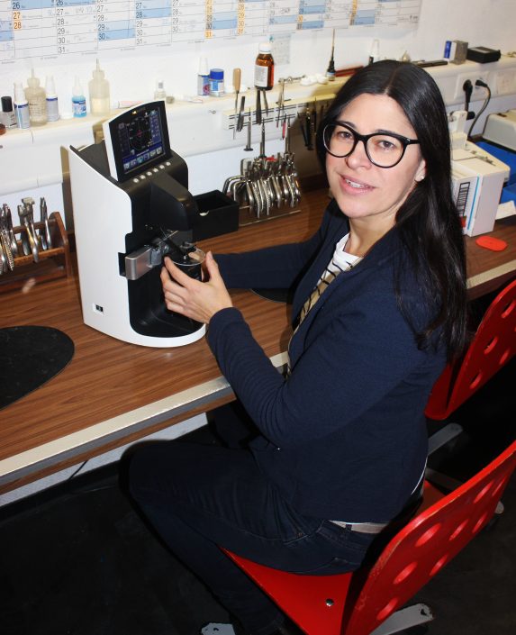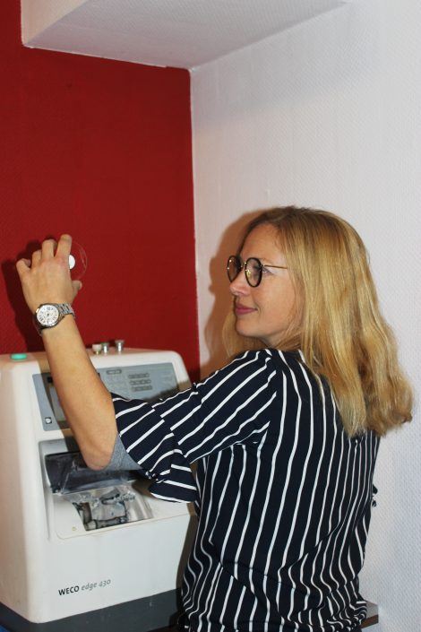 Claudia Thums-Papadopoulos am Scheitelbrechwertmesser.